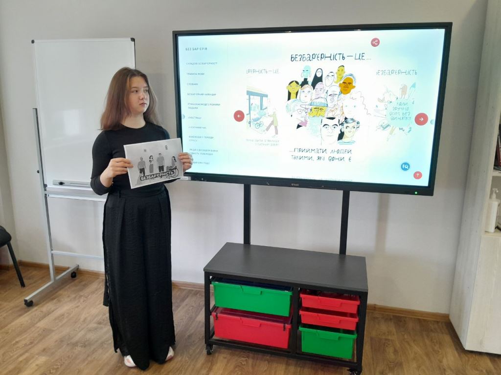 Учасники тижня виявили щиру зацікавленість і готовність приймати різних людей, визнавати рівність прав, гідність і потреб кожного. Значну увагу під час заходів було приділено обговоренню «Довідника безбар’єрності» – соціального проєкту, ініційованого першою леді України Оленою Зеленською. Матеріали довідника допомогли краще зрозуміти, як формувати мову поваги та взаємної підтримки, як правильно говорити про людей з інвалідністю, людей старшого віку, маломобільні групи, батьківство, різноманіття тощо. У процесі роботи було розкрито суть поняття «безбар’єрність», обговорено бар’єри фізичного, емоційного, інформаційного характеру та способи їх подолання. Здобувачі освіти визначили для себе те, що безбар’єрність – це суспільна норма, яка стає особливо актуальною в умовах війни.