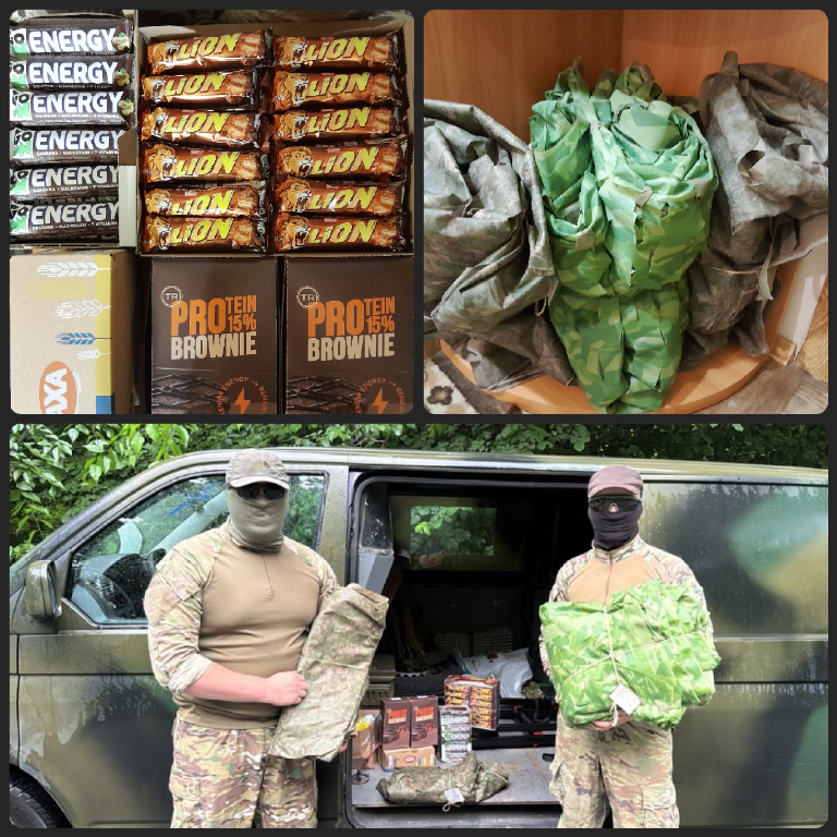 Ми продовжуємо підтримувати наших захисників і за кошти, зібрані під час весняної ярмарки 2025 року допомагали бійцям на різних напрямках. За це літо ми зробили велику кількість сіток з придбаних трьох рулонів флізеліну і передали воїнам, щоб воїни та їх техніка були в безпеці та ворог їх не помітив. Разом із сітками радували захисників шоколадними та протеїновими батончиками, надіслали світлодіодні ліхтарики, антитепловізорні тенти та допомогли відремонтувати авто для військових. Підрозділам Національної Гвардії України передали перев’язувальні пакети для порятунку життя бійців, акумулятори, домкрат та універсальний набір інструментів для ремонту авто.