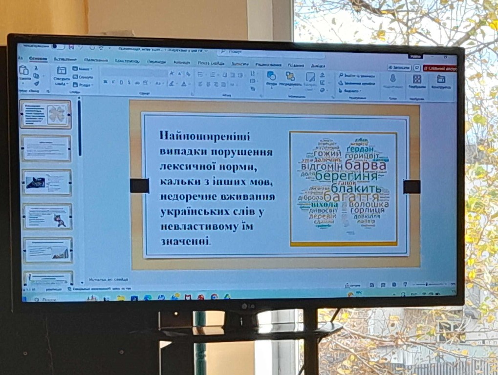 На уроці з української мови викладач пояснила коли відбуваються порушення лексичної норми і що це означає вживання слів у невластивому значенні, що призводить до помилок у мовленні. Калькування полягає в механічному копіюванні структури або значення слів та виразів з іншої мови, хоча в українській мові є власні відповідники. А недоречне вживання українських слів відбувається, коли схожі за звучанням (пароніми) або багатозначні слова використовуються без урахування їх точного лексичного значення.