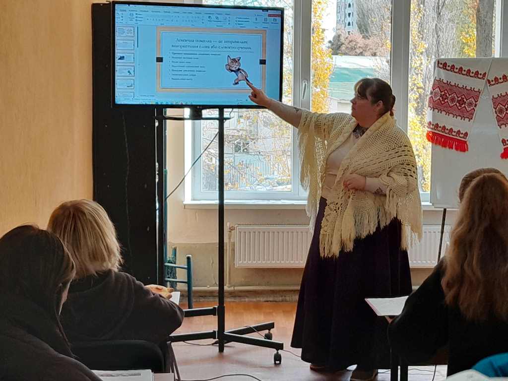 В рамках атестації викладач української мови та літератури Ганна Лесик провела відкритий урок на тему : «Поширені випадки порушення лексичної норми, кальки з інших мов, недоречне вживання українських слів у невластивому їм значенні» – з української мови та «Трагічна творча доля Остапа Вишні» – з української літератури.