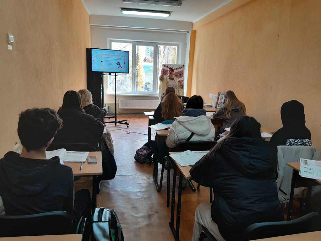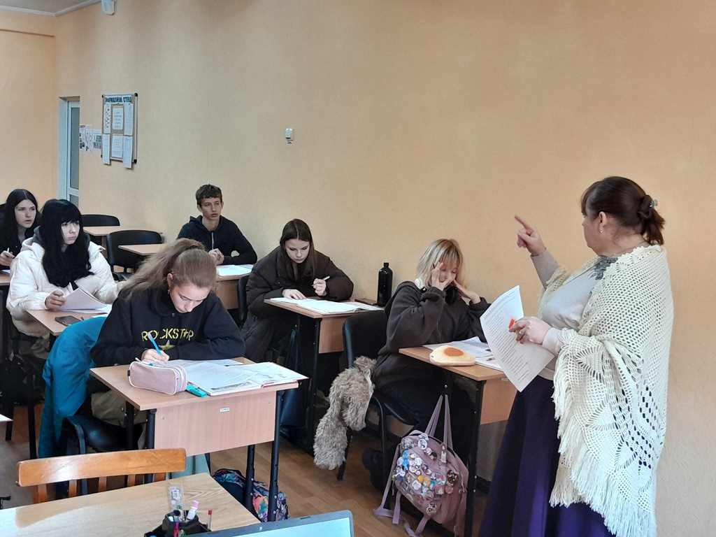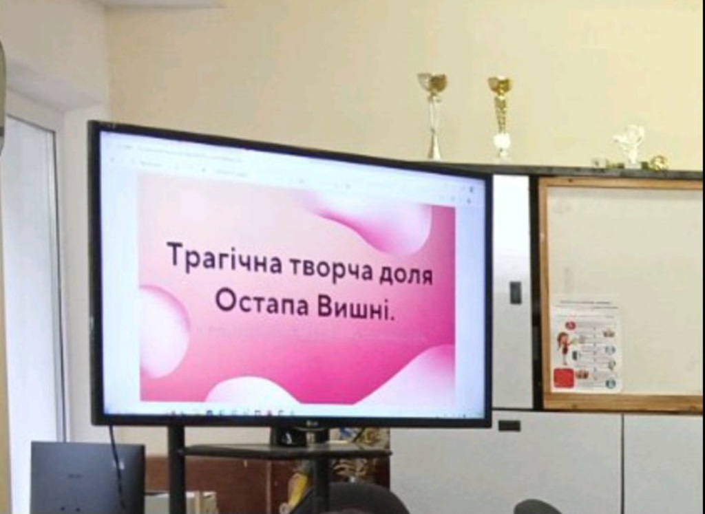 На уроці з української літератури, присвяченому життю та творчості Остапа Вишні, викладач розповідала про трагічну долю письменника, який писав гуморески. Здобувачі освіти змогли ближче познайомитися з життям письменника під час перегляду відео та презентації про нього.