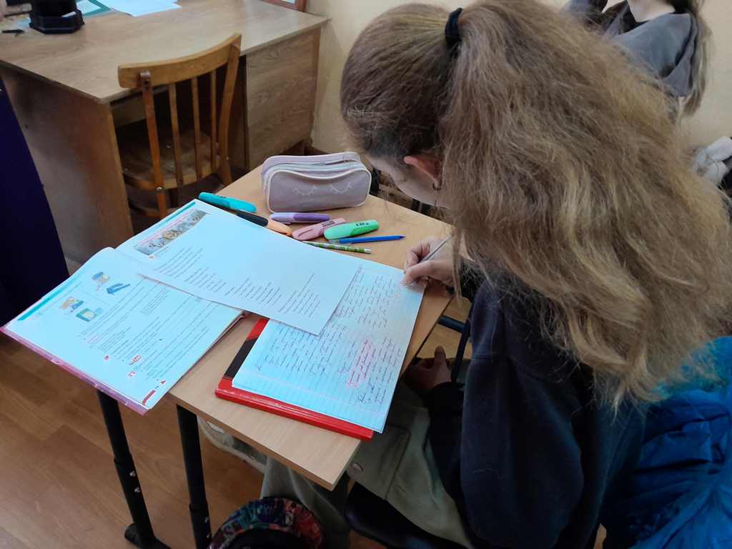 Здобувачі освіти активно брали участь у повторенні пройденого матеріалу та наводили приклади слів з нової теми, виконували вправи у зошитах та зачитували свої відповіді. Навчальні відео, які використовувала викладач допомагали краще засвоїти новий матеріал.