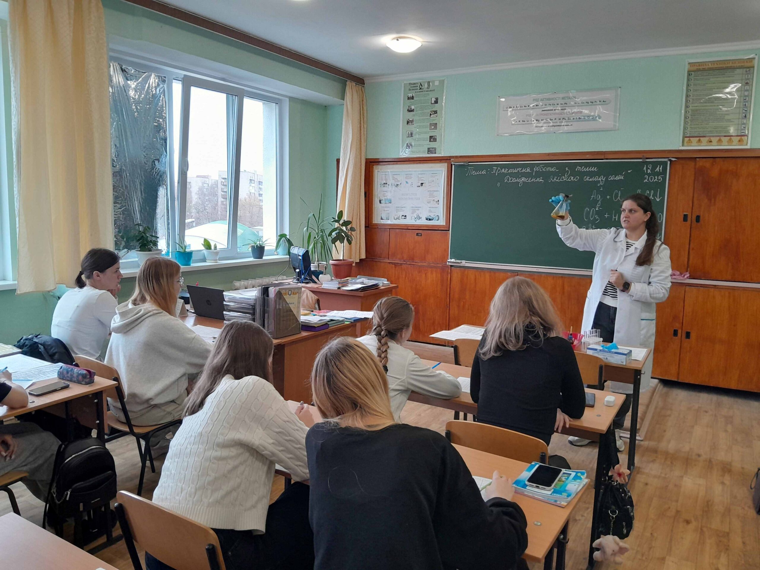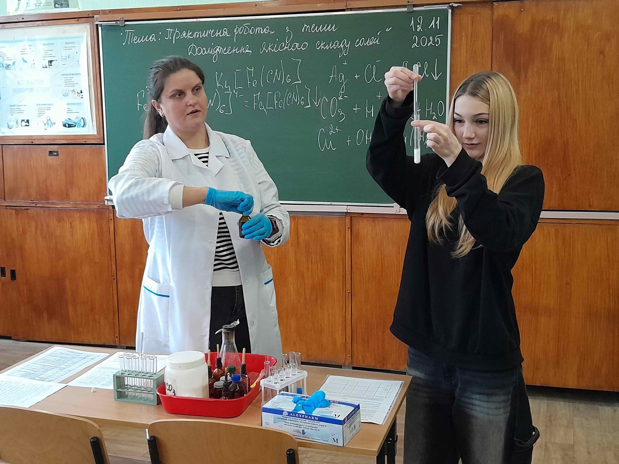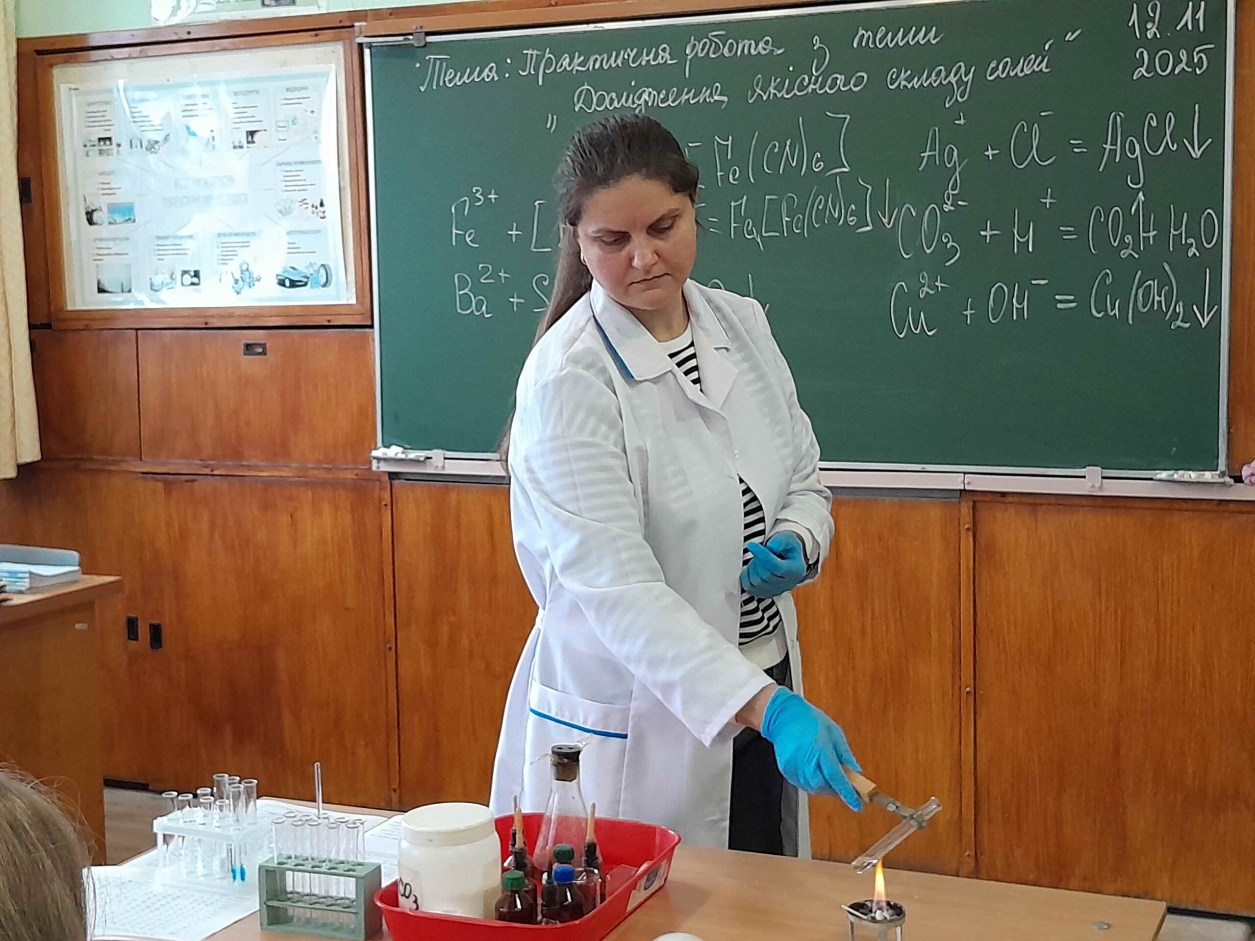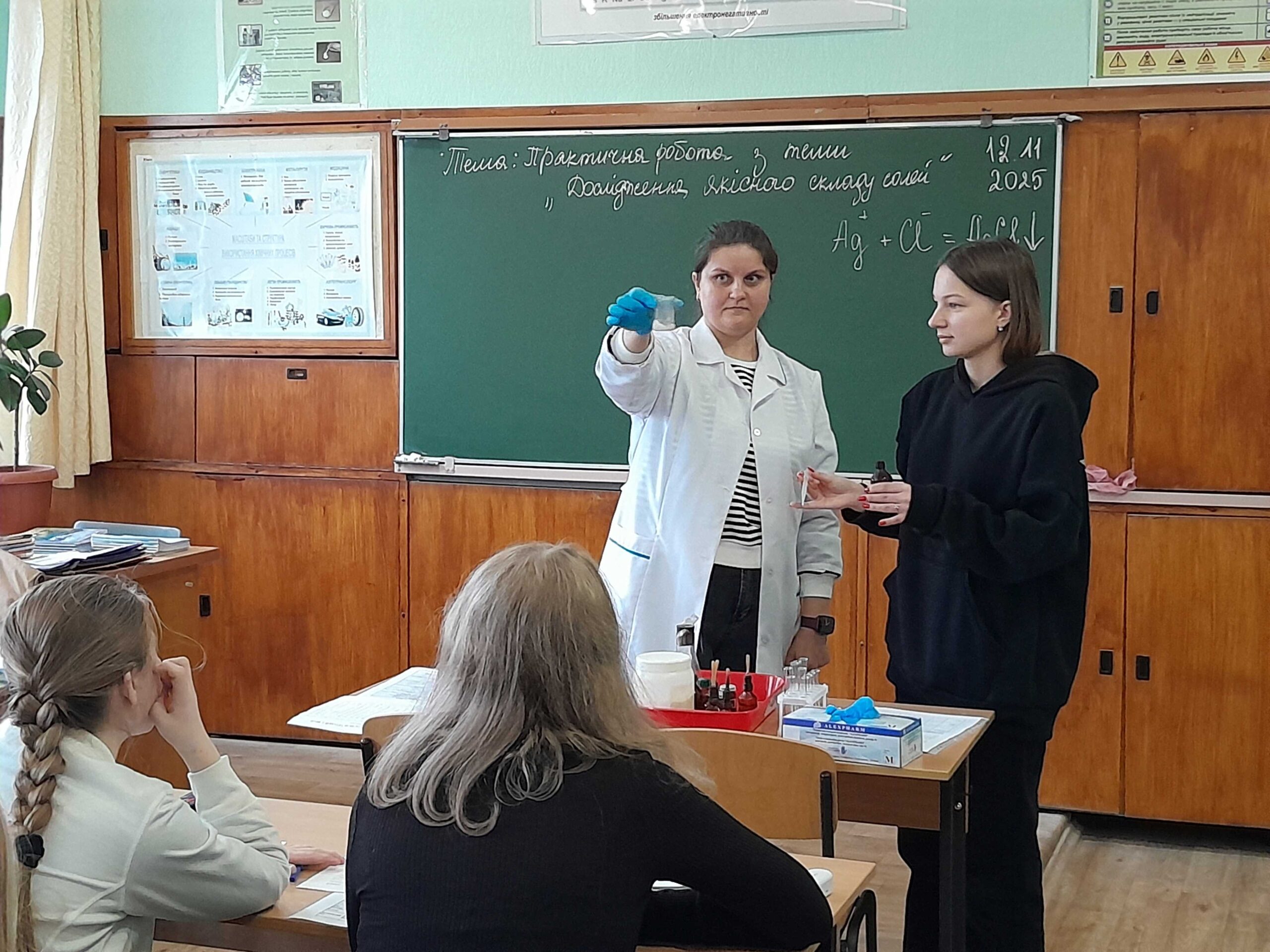 12 листопада викладачем хімії та біології Мовчан Наталією Михайлівною був проведений відкритий урок з хімії на тему: «Дослідження якісного складу солей», під час якого здобувачі освіти вчилися визначати якісний склад солей (катіони та аніони) за допомогою характерних хімічних реакцій, формувати практичні навички роботи з хімічними реактивами, розвивати вміння аналізувати результати хімічного експерименту, робити спостереження та аргументовані висновки.