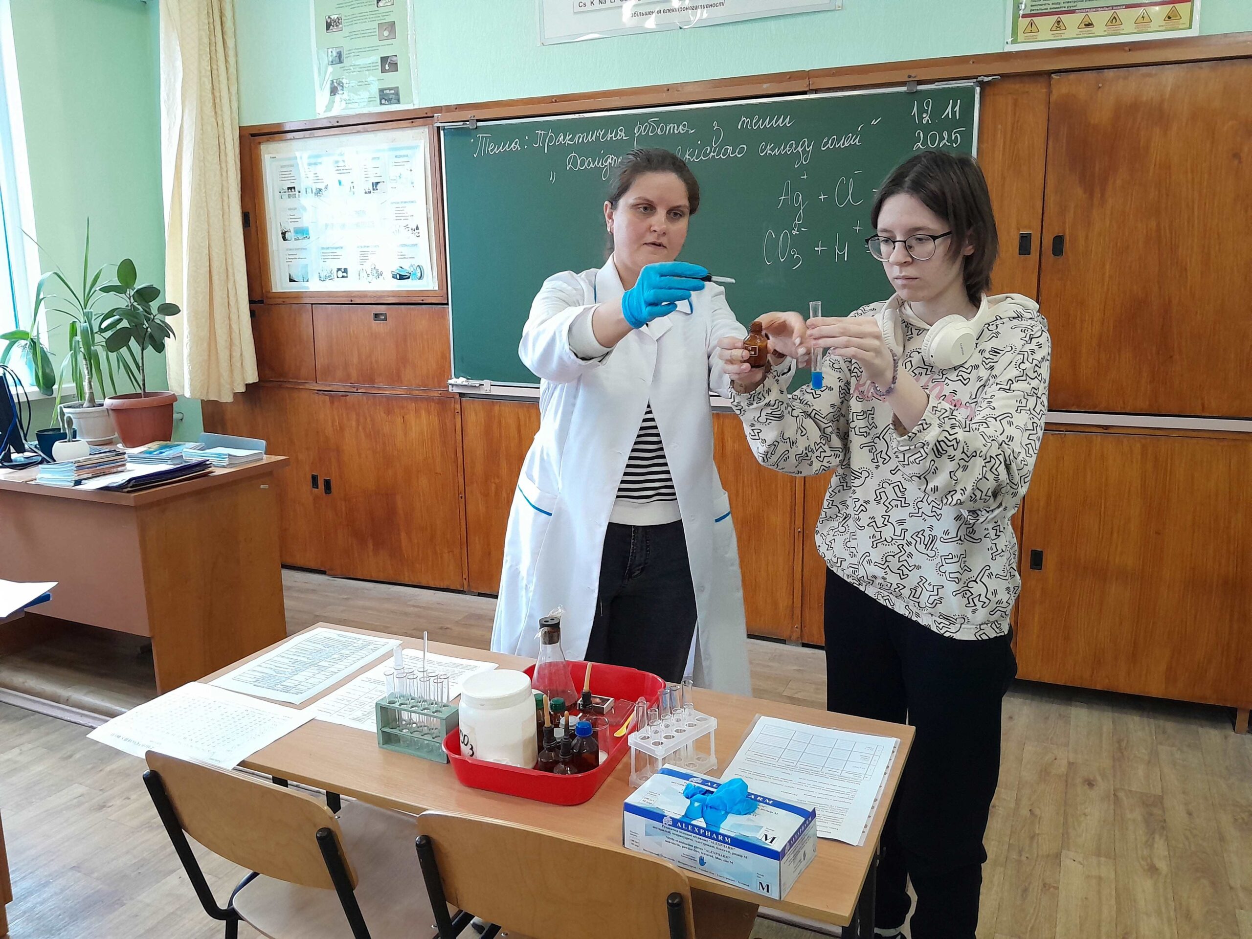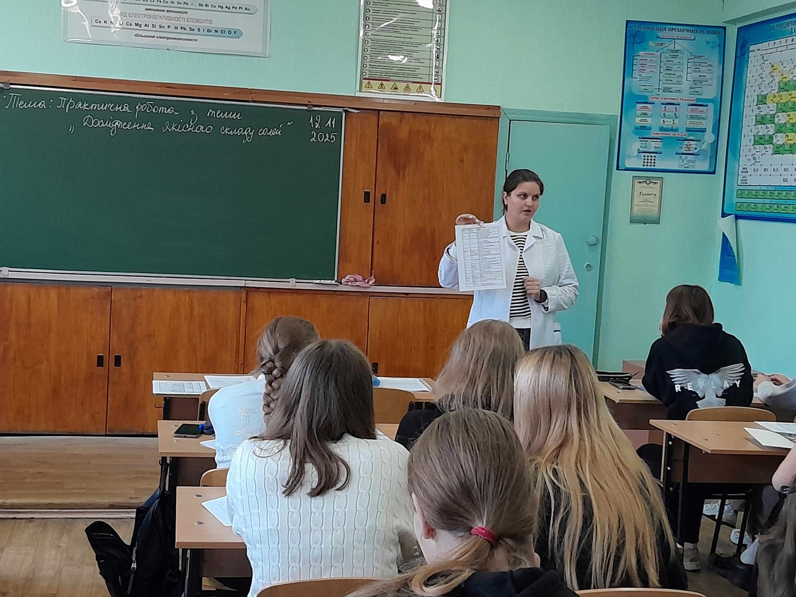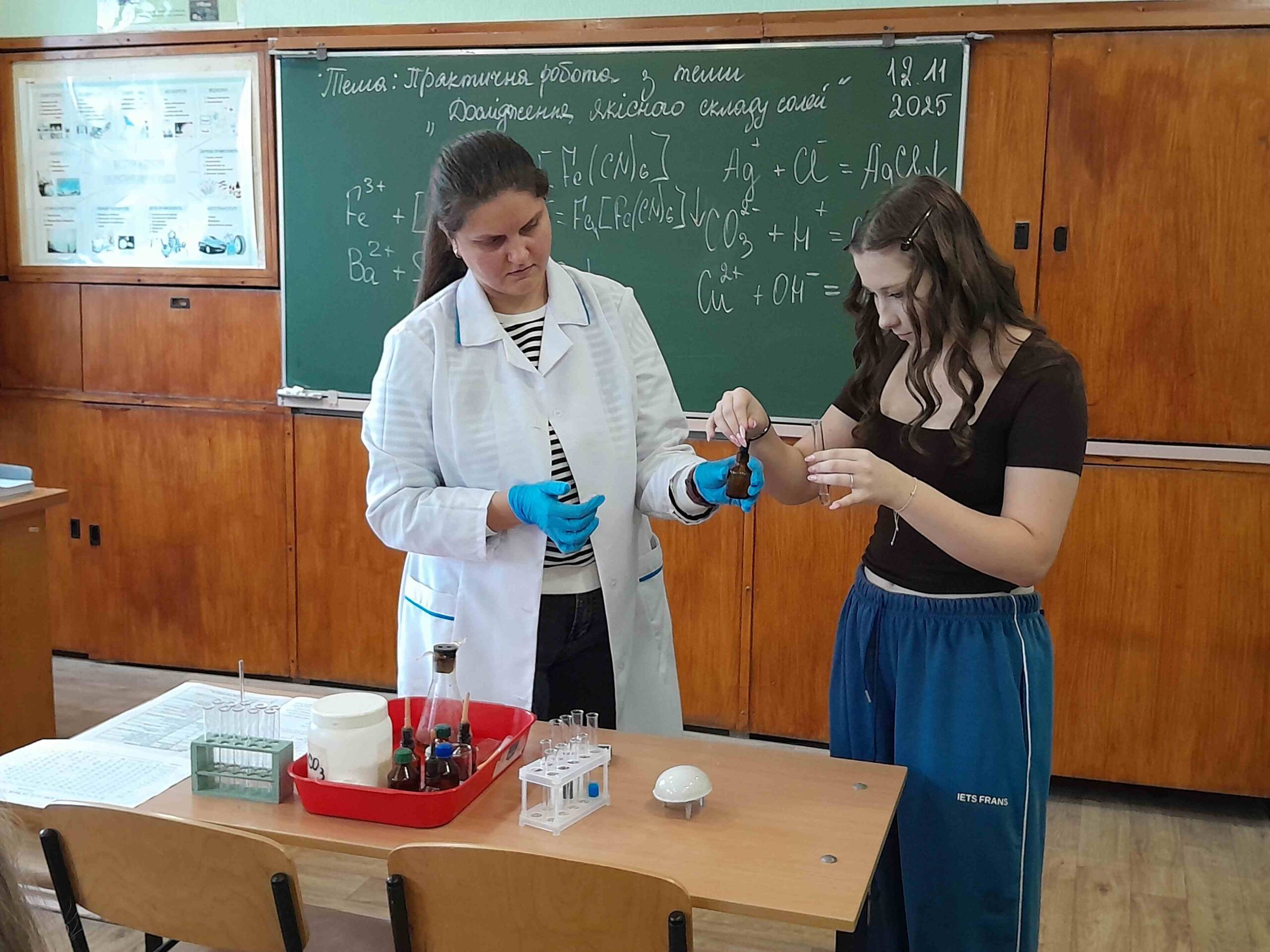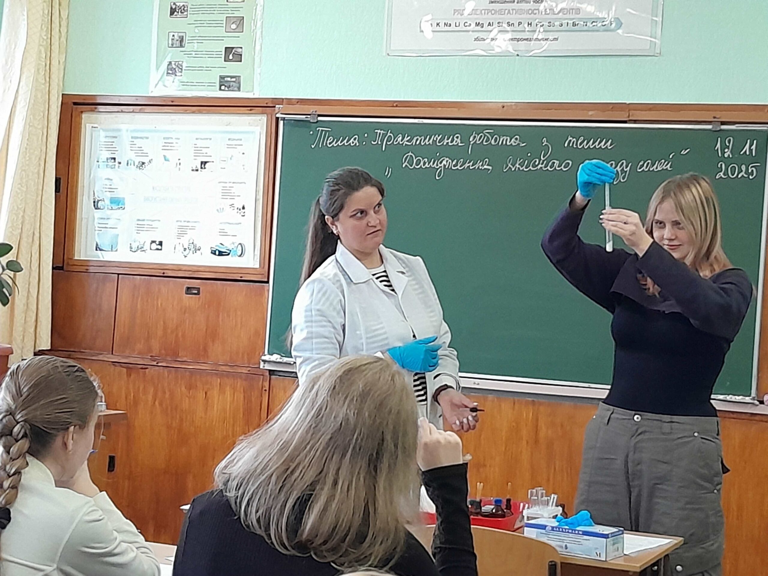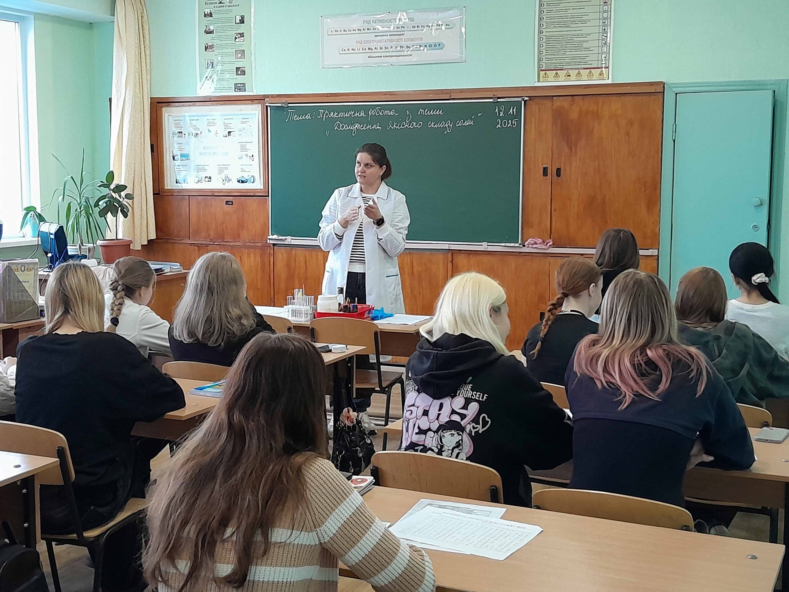 12 листопада викладачем хімії та біології Мовчан Наталією Михайлівною був проведений відкритий урок з хімії на тему: «Дослідження якісного складу солей», під час якого здобувачі освіти вчилися визначати якісний склад солей (катіони та аніони) за допомогою характерних хімічних реакцій, формувати практичні навички роботи з хімічними реактивами, розвивати вміння аналізувати результати хімічного експерименту, робити спостереження та аргументовані висновки.