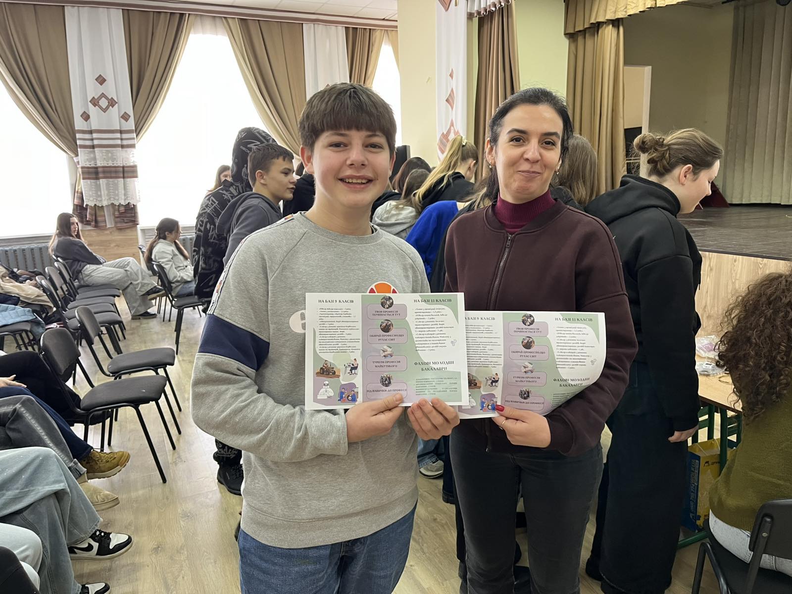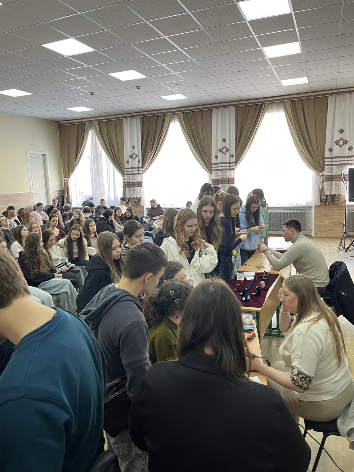 Атмосфера була надзвичайно дружньою та активною — актова зала була наповнена учнями 9-х класів , які із захопленням брали участь у всіх активностях та щиро раділи подарункам.