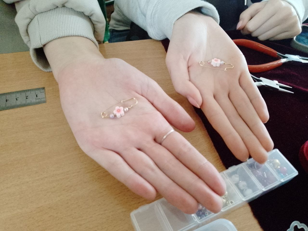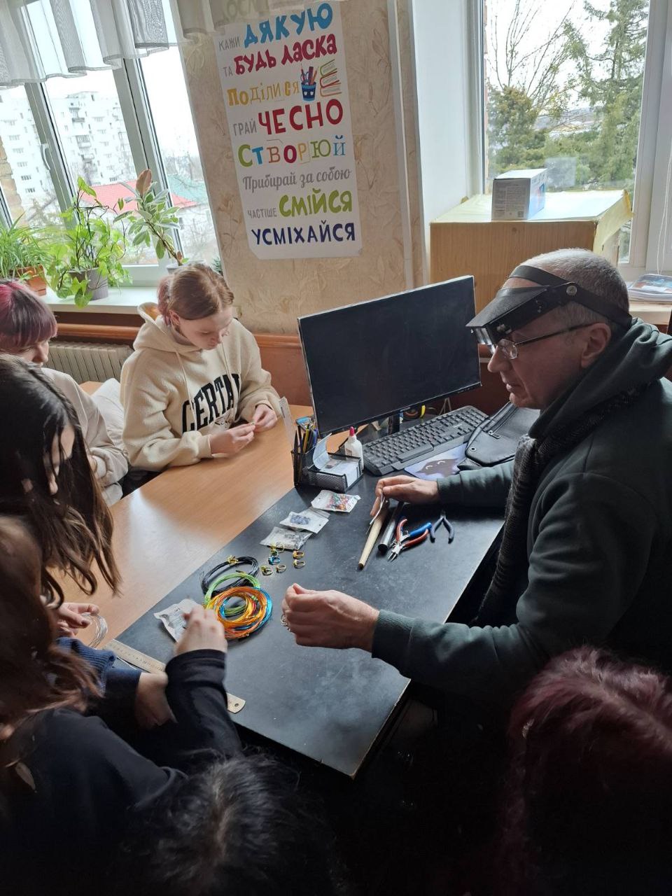 Досвідчені майстри-ювеліри Кухтій Оксана, Свердлов Ігор, Корносенков Валерій не лише розповіли про тонкощі своєї справи, а й провели захопливі майстер-класи. Під час зустрічі учні не просто спостерігали, а стали повноправними учасниками творчого процесу. На професійному майстер-класі кожен зміг відчути метал та інструменти в руках, власноруч виготовити свої перші прикраси, створивши два унікальні вироби: стильну булавку та витончену каблучку.