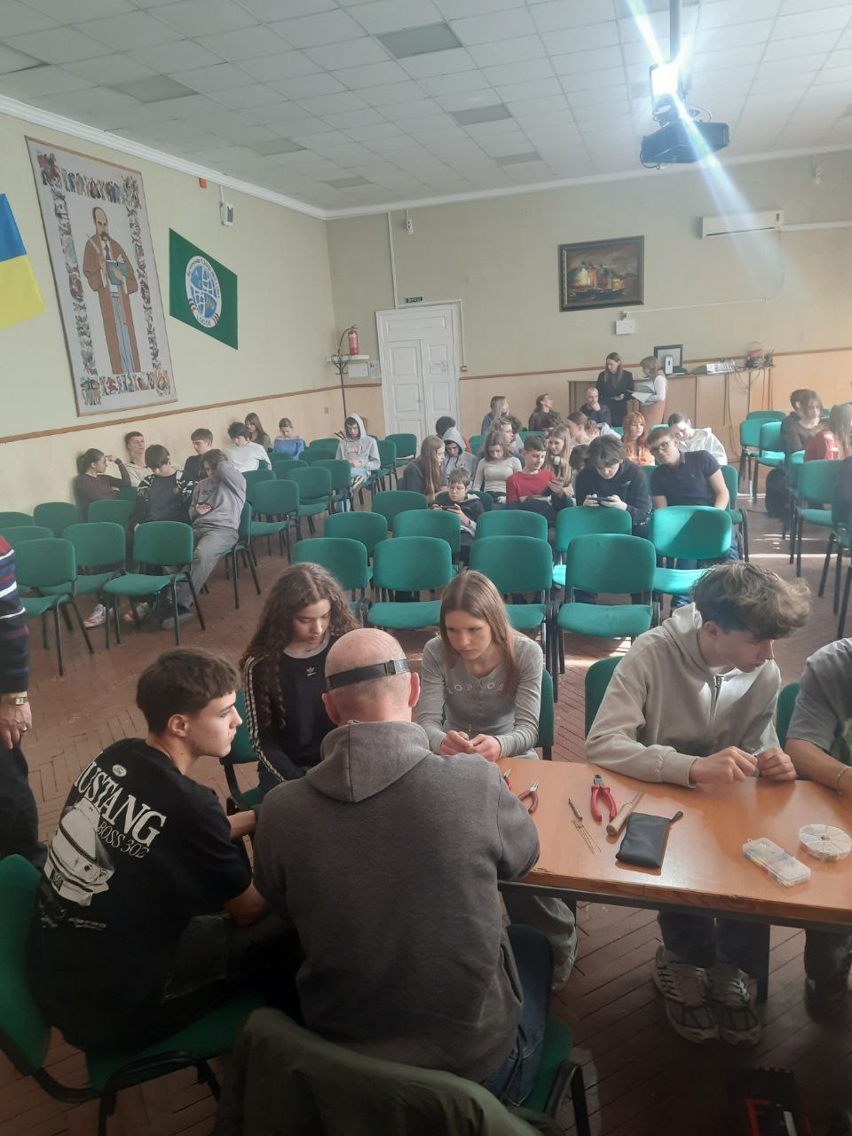 Під час профорієнтаційної зустрічі майстер виробничого навчання Жанна Дубровіна та викладач Олексій Раймон розказали про різноманіття вибору професій у коледжі. Поки наші представники ділилися секретами вступу та перспективами професій, майстри Ксендзов Іван, Кухтій Оксана, Свердлов Ігор готували робочі місця для найцікавішого – практичного майстер-класу.